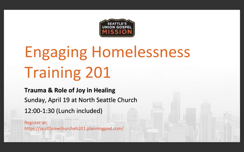 On April 19th we have a workshop training with the Seattle Union Gospel Mission. The UGM will take us through Homelessness 201: Trauma & Rile of Joy in Healing. It’s going to a beneficial experience for anyone wanting to learn how to best engage with our homeless neighbors. Join us by registering below.