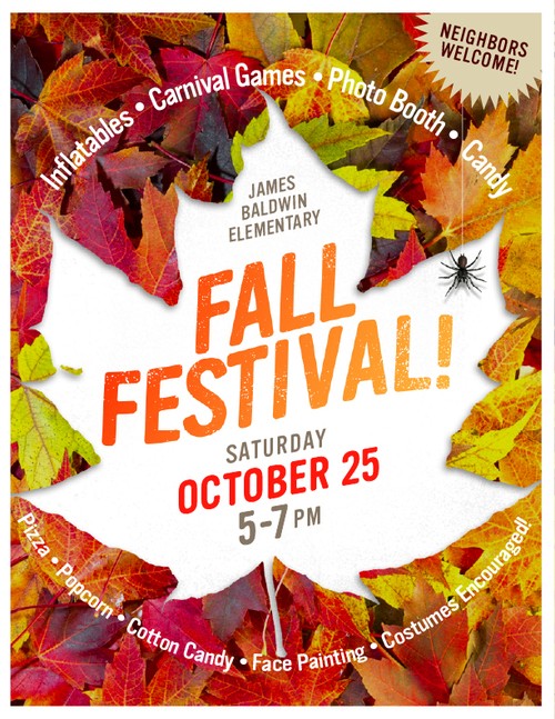 Come and Join us for our annual Fall Festival! October 25th from 5-7pm at James Baldwin Elementary.